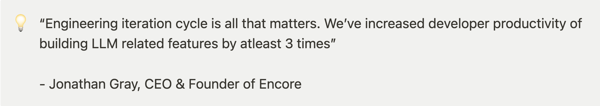 LLM prompt development was bottlenecked on Jon and the team couldn’t iterate fast enough. Status quo was untenable and Encore needed to find a solution. After searching online, Jon signed up for a demo with Vellum.