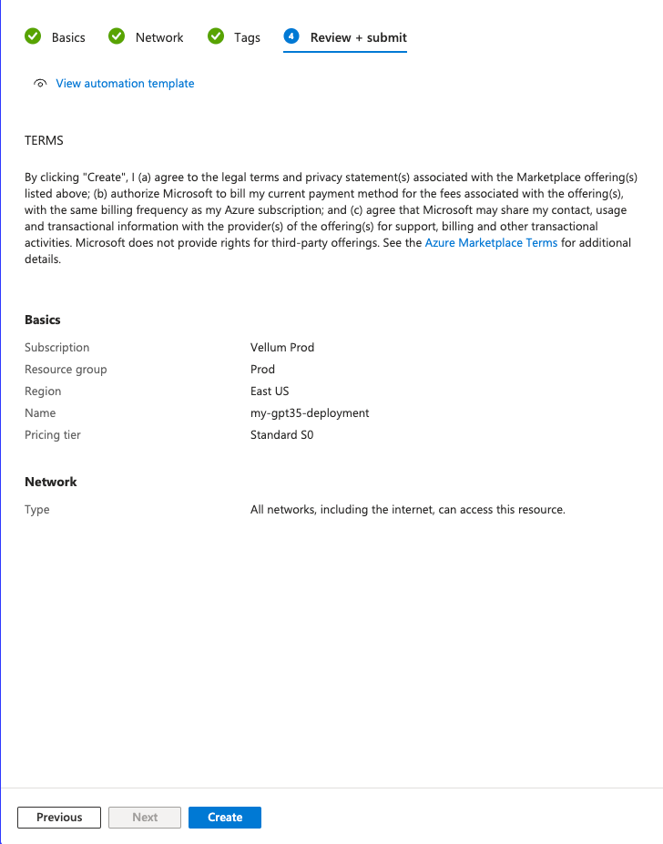 You now have a ready-to-go OpenAI model hosted on Microsoft Azure. For more info on how to integrate with Microsoft's API directly, see here . If you're a Vellum customer, you'll probably want to use your newly deployed model through Vellum . This way, you can benchmark it against existing models, run evaluations against it, and use it from within Workflows or Prompt Deployments.
