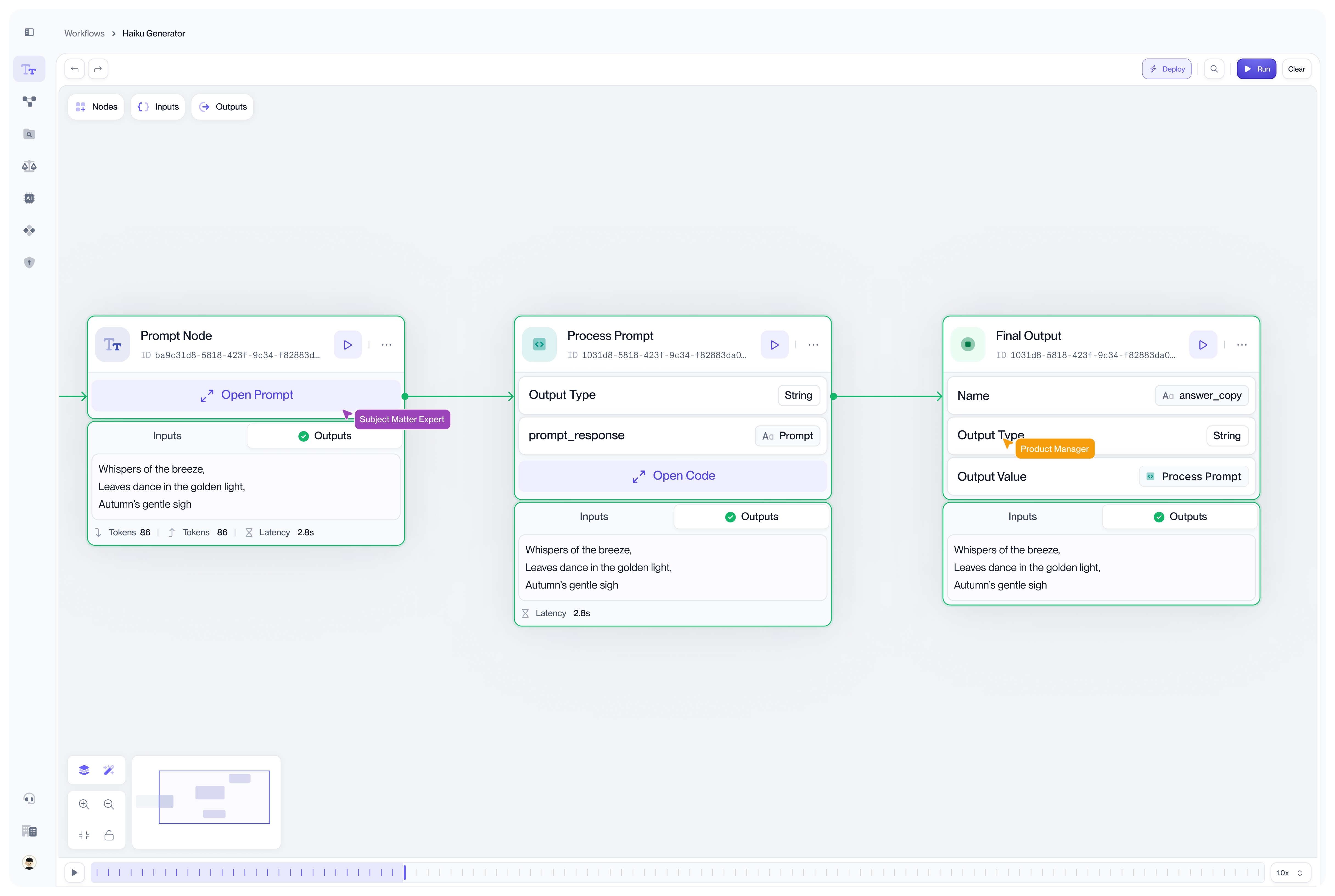 There is a growing need from both engineers, and other stakeholders (e.g. PMs, Legal, Management) to debug these agents in a visual graph . We've seen that same scenario in different industry ( legal , healthcare , edTech ), where most SME's are utilizing Velum's visual and agentic builder to prototype and test new agent ideas. With that experience, you can easily visualize the decision tree that the model executed on, which tools were considered, why specific paths were taken, how confidence scores evolved through the conversation.