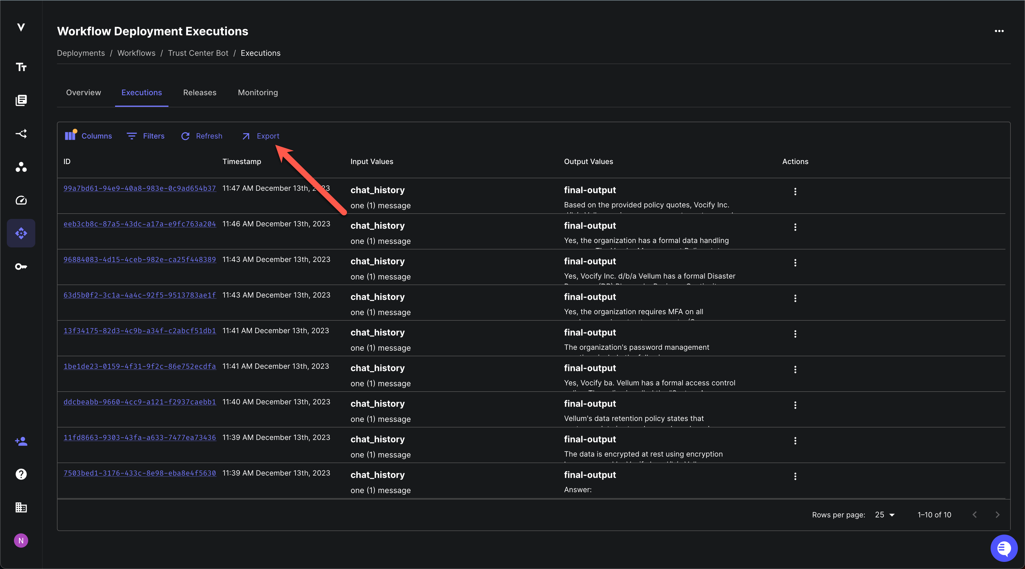 Export Workflow Deployment Executions