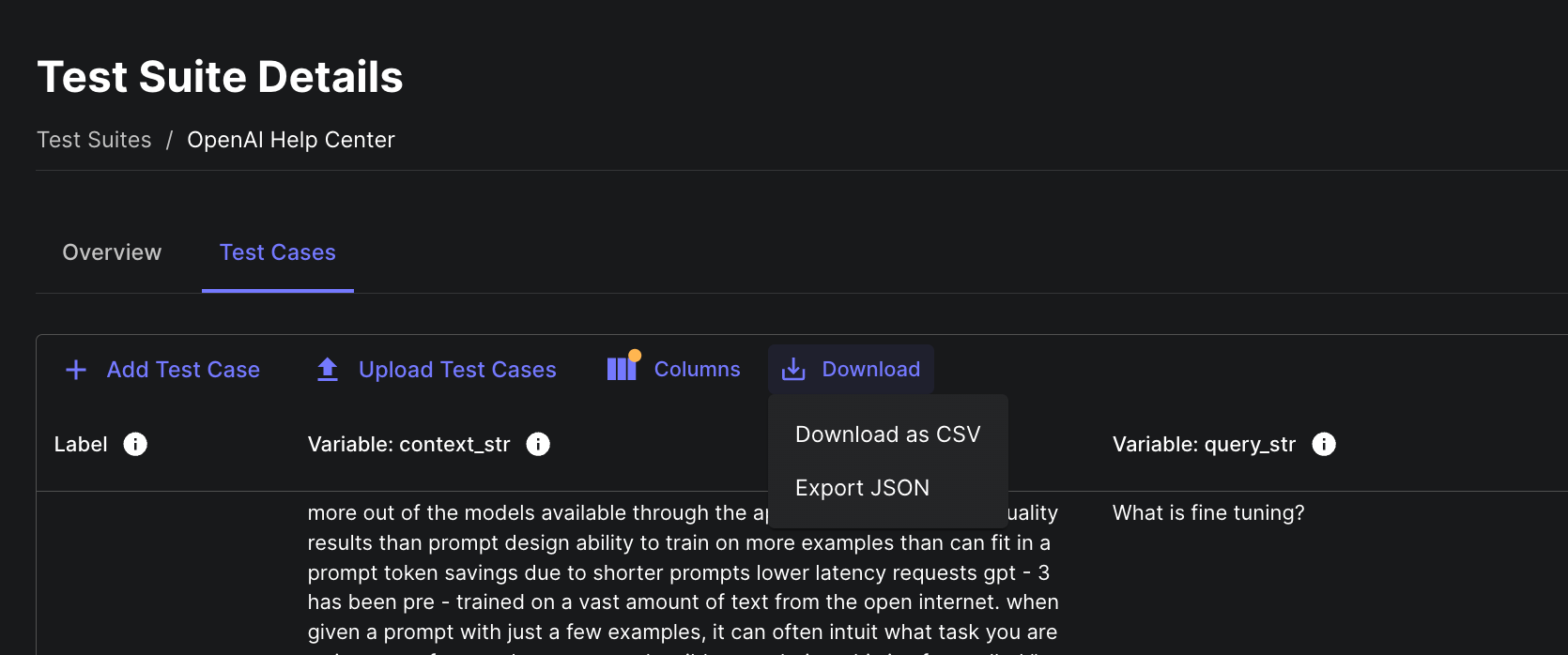As with many of our other tables, you can now download the Test Cases within a Test Suite as a CSV.