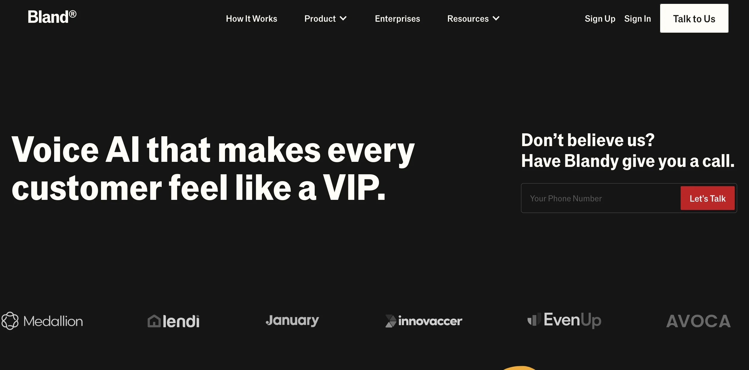 Bland AI: Best for organizations needing hyper-scalable, security-focused voice automation capable of supporting massive inbound and outbound call volumes.