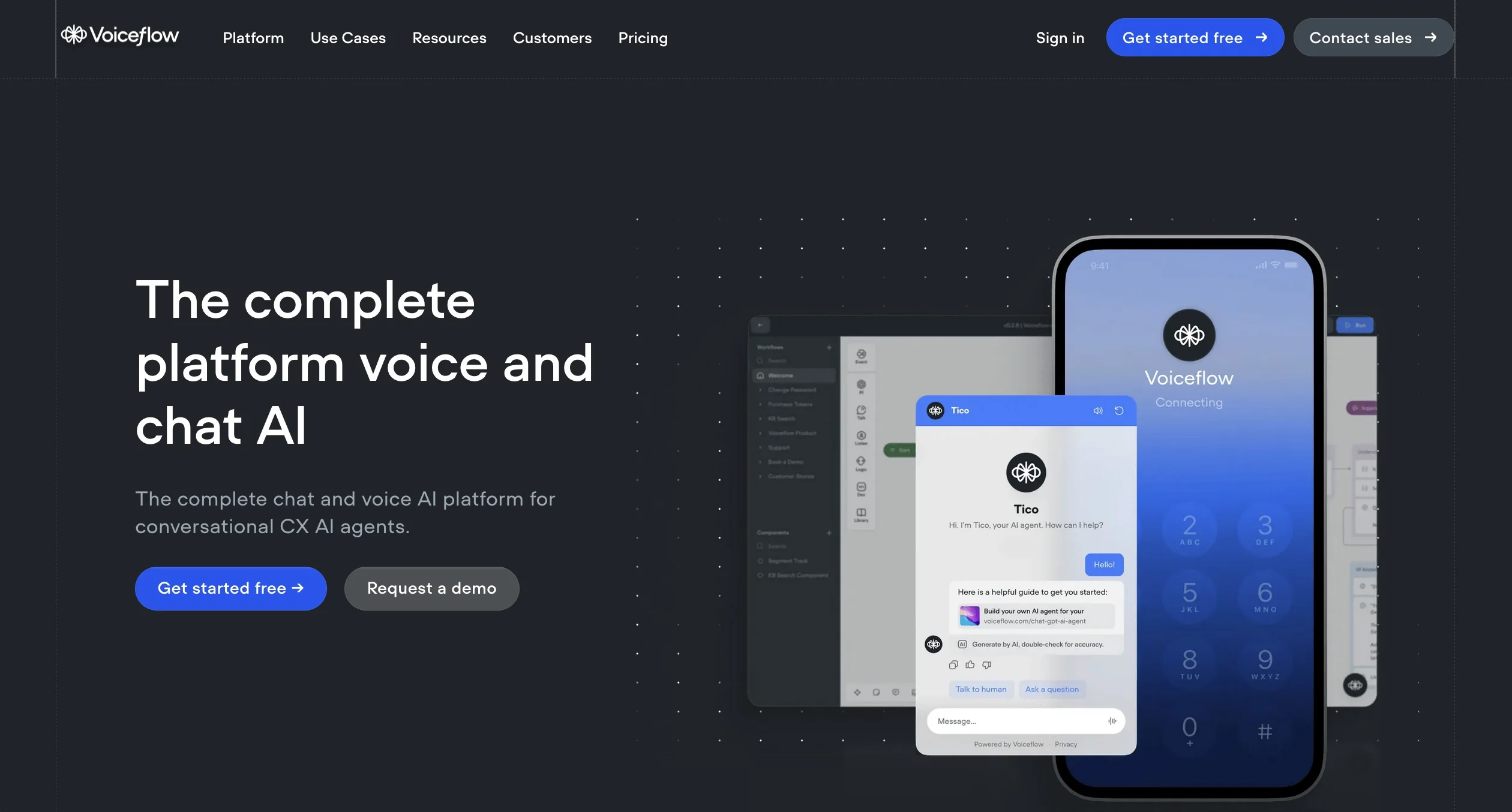 Voiceflow: Best for teams that prioritize rapid prototyping, collaborative design, and building conversational flows across both voice and chat channels.