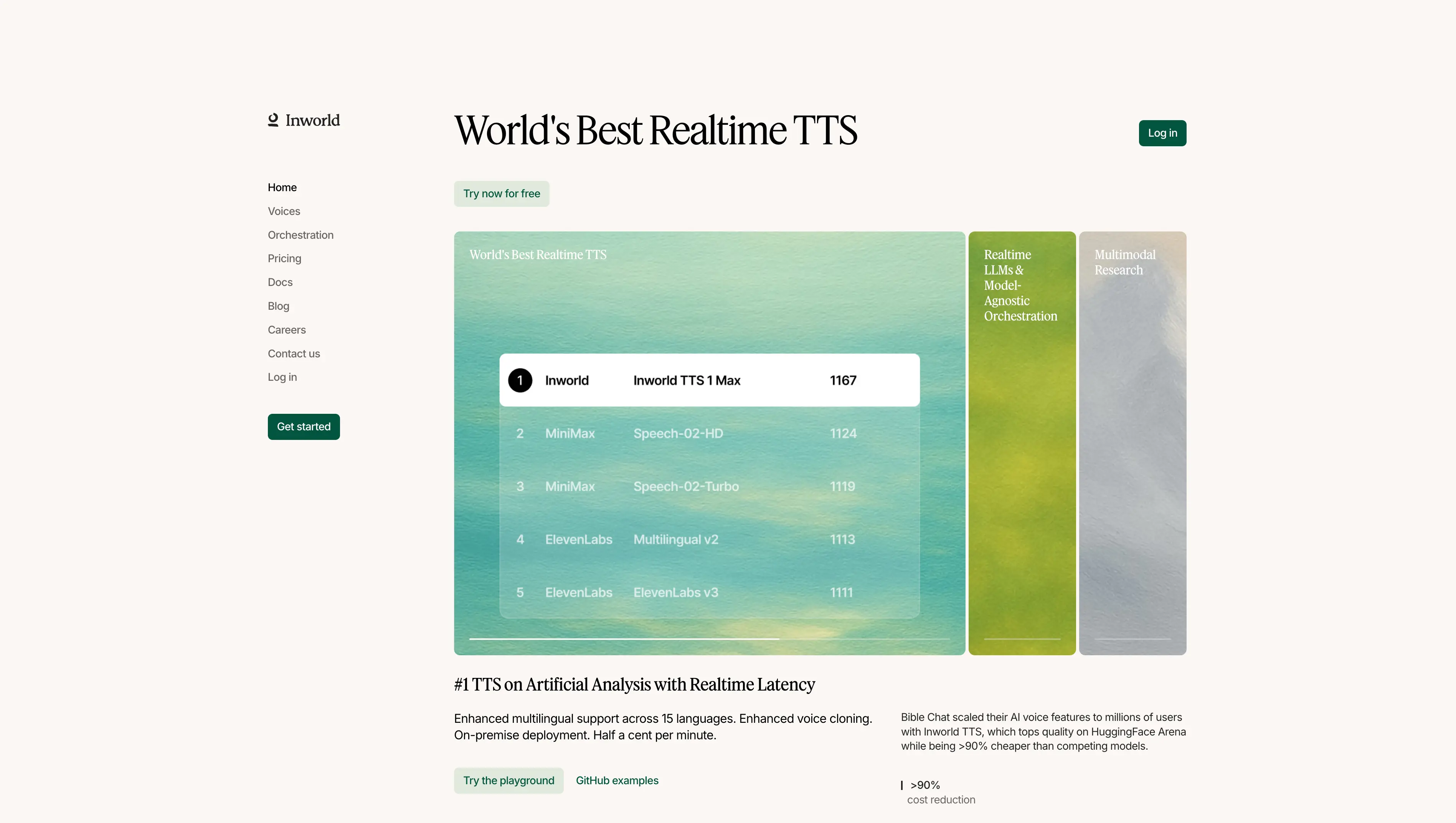 Best-in-class TTS + voice cloning; paired with other telephony stacks