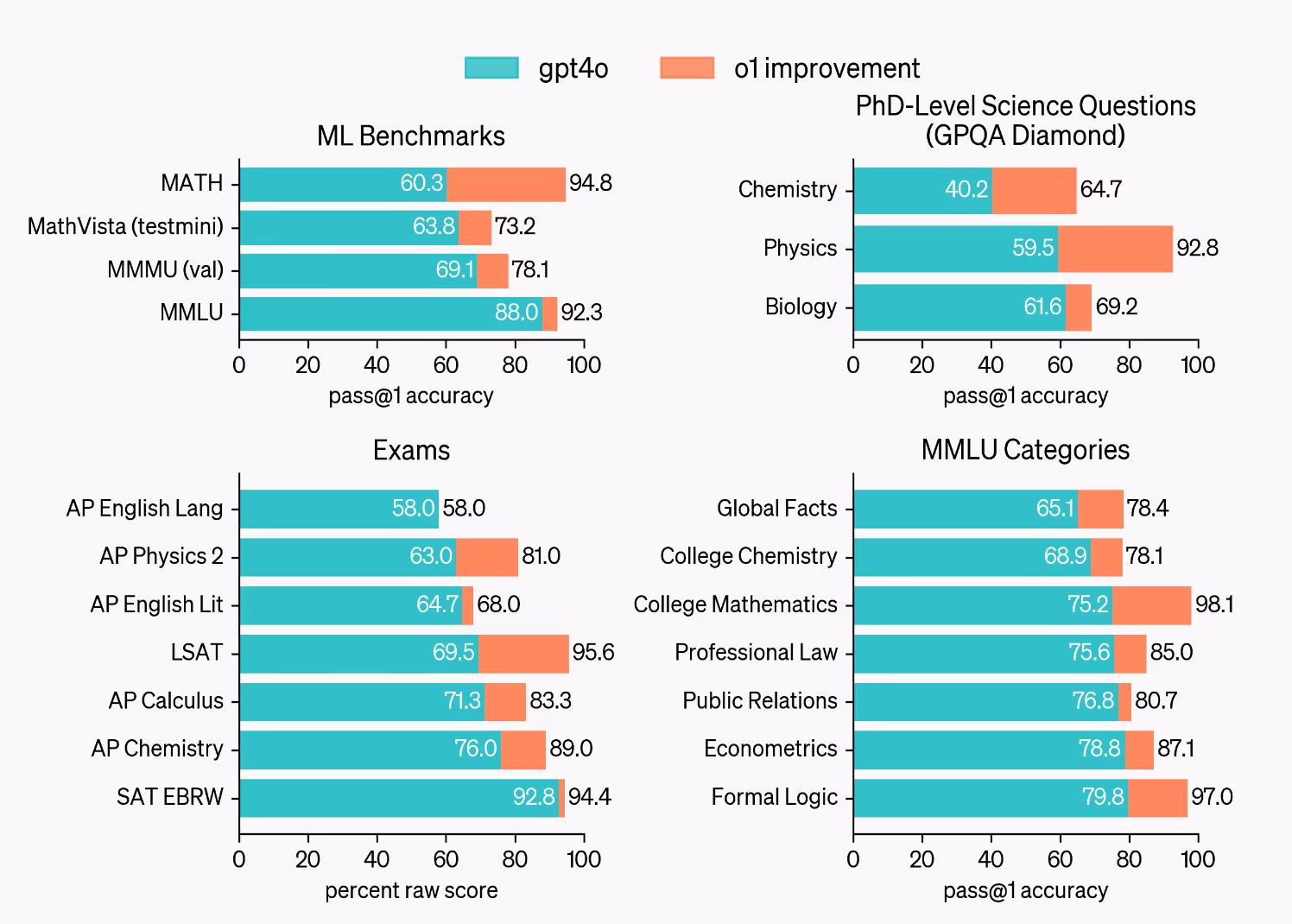 When new models are released, we learn about their capabilities from benchmark data reported in the technical reports. The new OpenAI o1 model improves on the most complex reasoning benchmarks: