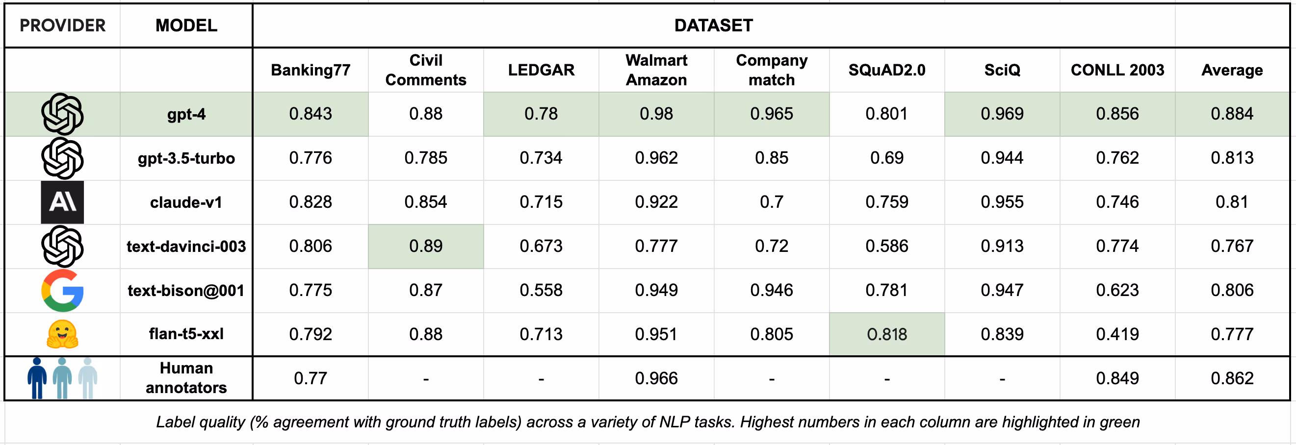 While you can use LLMs to write a kids story, get an explanation on a complex topic, or hook them up in your product, recent report shows that LLMs can label datasets with similar or better quality to human annotators.