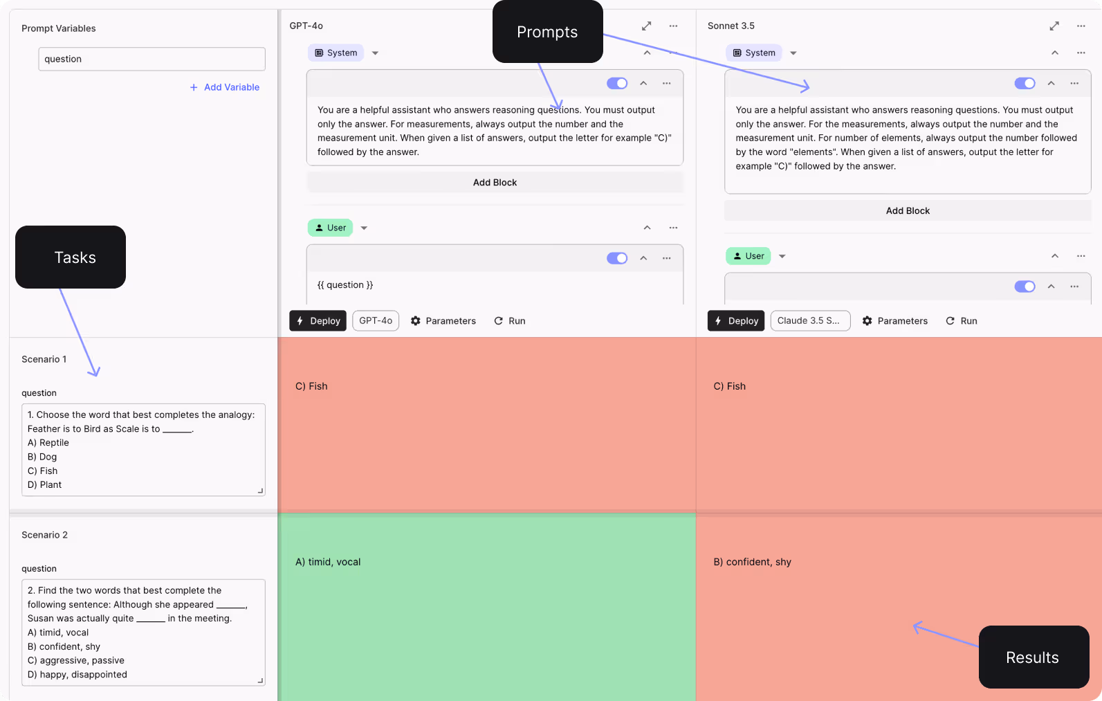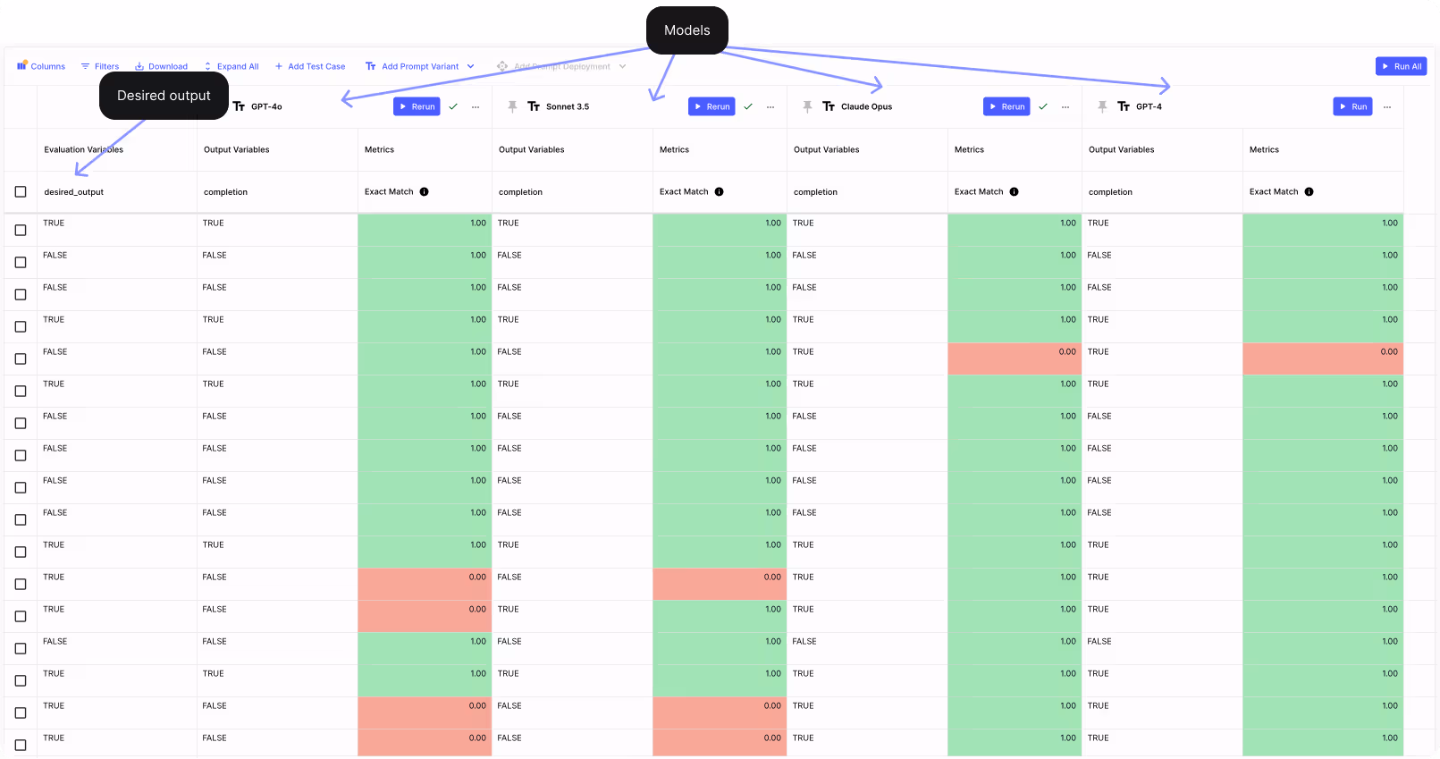 Then, we tested Claude 3.5 Sonnet and GPT-4o using Vellum’s Evaluation suite: