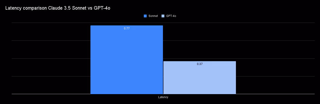 Claude 3.5 Sonnet is 2x faster than Claude 3 Opus, but it’s still lags behind GPT-4o when it comes to latency: