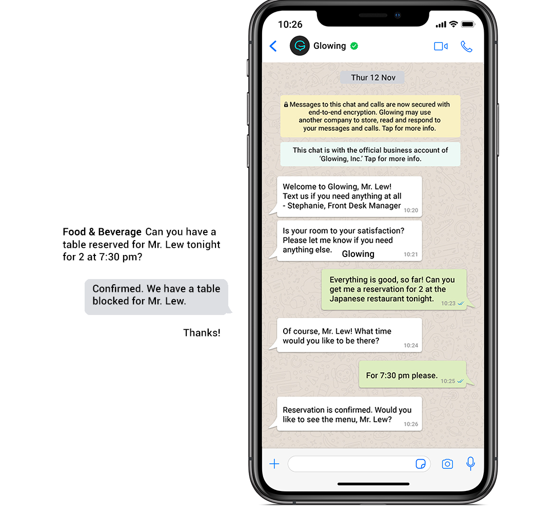 With Glowing’s messaging platform, hotel staff can quickly give guests the information they need and take care of requests right away.