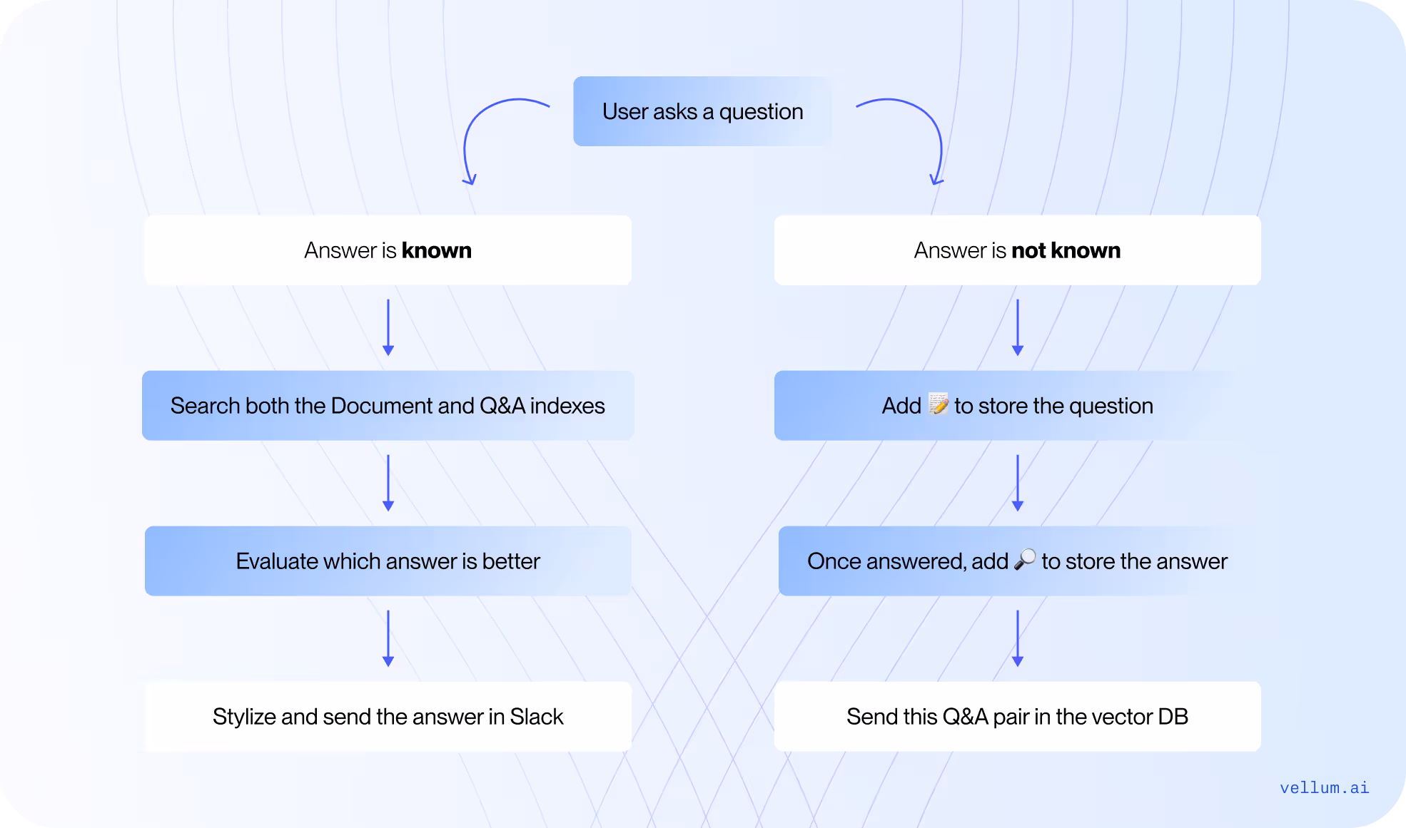 - Future Queries: The next time the same question is asked, this AI workflow will search the vector database (including both documentation and Q&A pairs), rank the best answer, and provide it quickly.