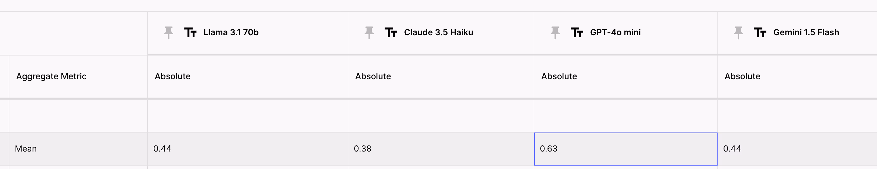 Winner: GTP-4o mini demonstrates better precision and accuracy than all other models. This would be our preferred model for this task.