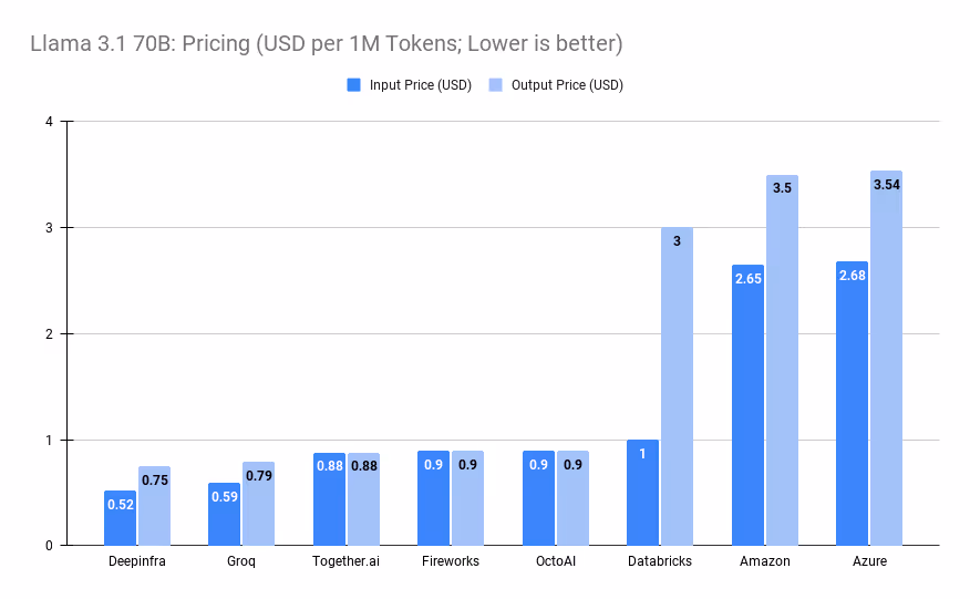 Since Llama 3.1 70B is open-sourced, you have many options to run it. You can decide to run it locally, or via a hosted version from various providers. Running these open source models was one of the cheapest options, but closed-source models are continuing to lower their prices as well.