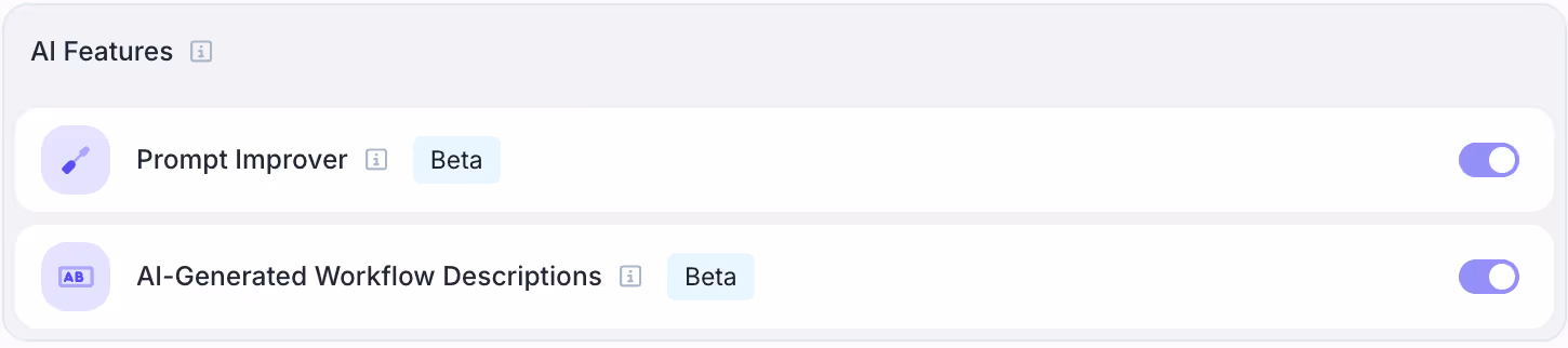You can enable or disable both of these features from your Organization Settings under the “AI Features” section.