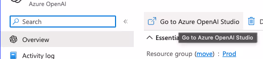 Once you’re on the resource, click the tab towards the top of the page to take you to Azure OpenAI Studio.