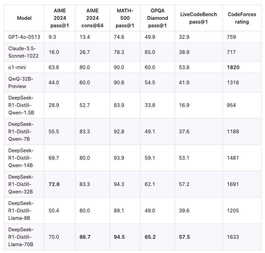 The results are quite powerful too -- A distilled 14B model outperforms state-of-the-art open-source QwQ-32B-Preview by a large margin, and the distilled 32B and 70B models set a new record on the reasoning benchmarks among dense models: