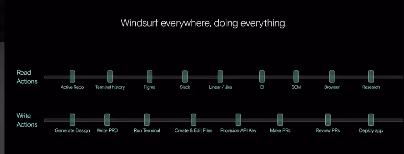 Windsurf is generating around 90M lines of code every day. And their secret sauce, as they call it, is “the shared timelines between human & AI”. Their thinking is that SWE agents must meet developers outside of their IDEs, whenever they are.