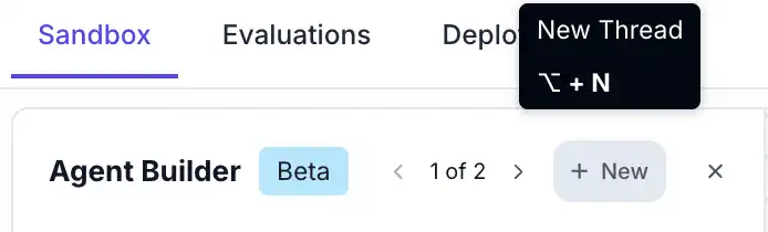 Threads save and organize your conversations in Agent Builder, so you can leave and come back to previous conversations without losing progress or create multiple threads to separate different ideas or tests.